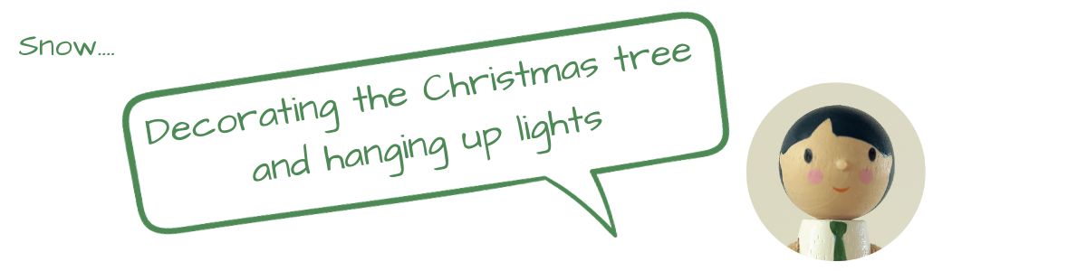 It’s the first of December and the Christmas friends are decorating their Christmas tree. Holly climbs up the ladder to reach the top branches. Snow holds the string of lights, carefully unravelling them, as Holly winds them up and around the tree branches. Holly shouts from the top of the tree, “Christmas is coming!” Down below her, Snow smiles and starts the countdown, “24 more sleeps to go until Christmas Day!”