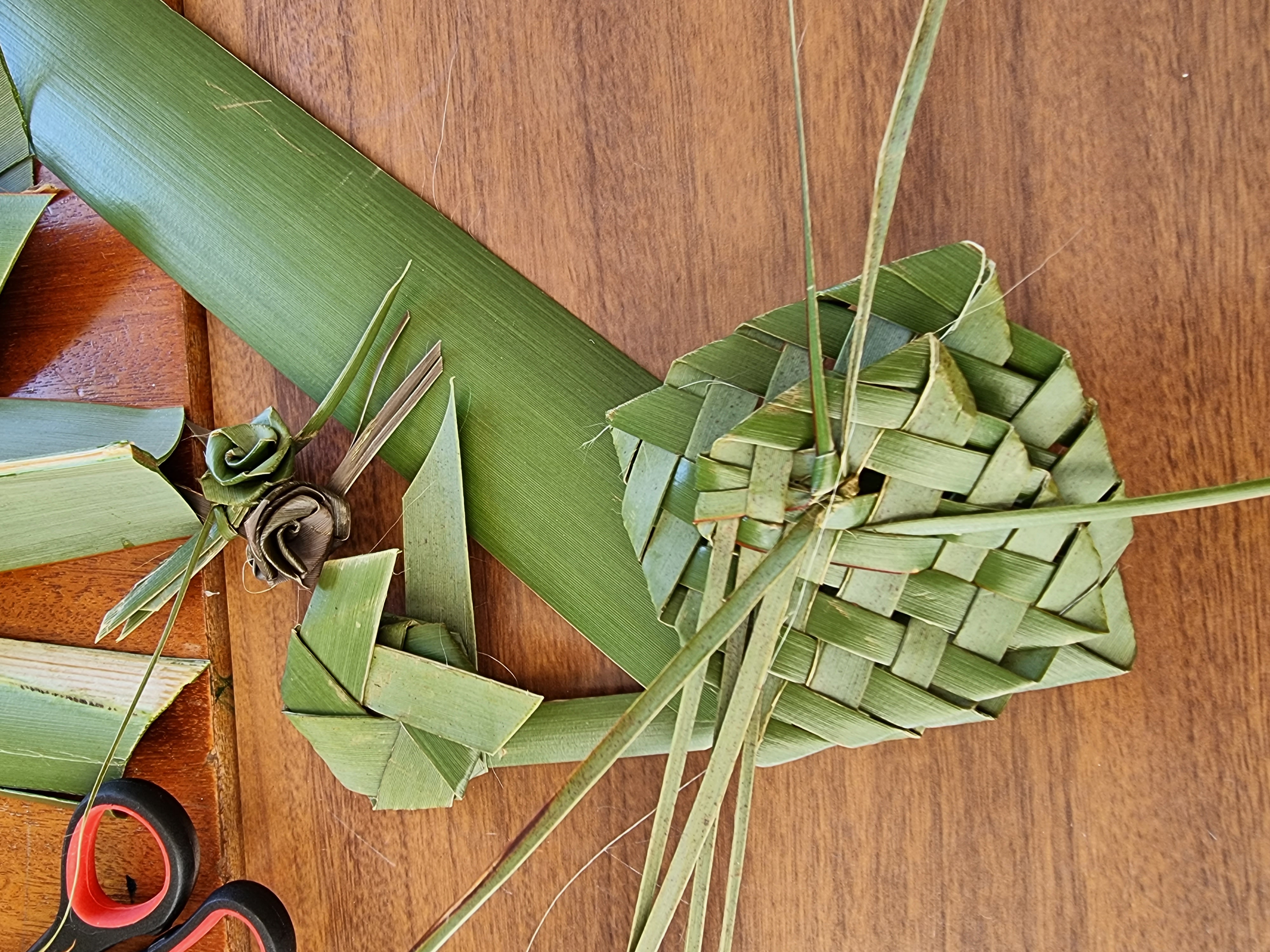 Simple harakeke (flax) flowers to adorn hand made cards, gifts, displays and a kono (basket) with the promise to take creation’s taonga.