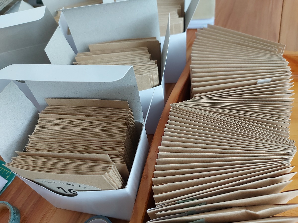 By the time the boxes were all packaged up it was dark and I forgot to photograph them before getting them ready for the courier. My youngest was generously donating time and energy and enthusiasm to the task and he ended up sending me to bed at 3am and finished the last few boxes. The final stack of boxes will be on the courier Monday morning and should be to the purchasers by Wednesday.