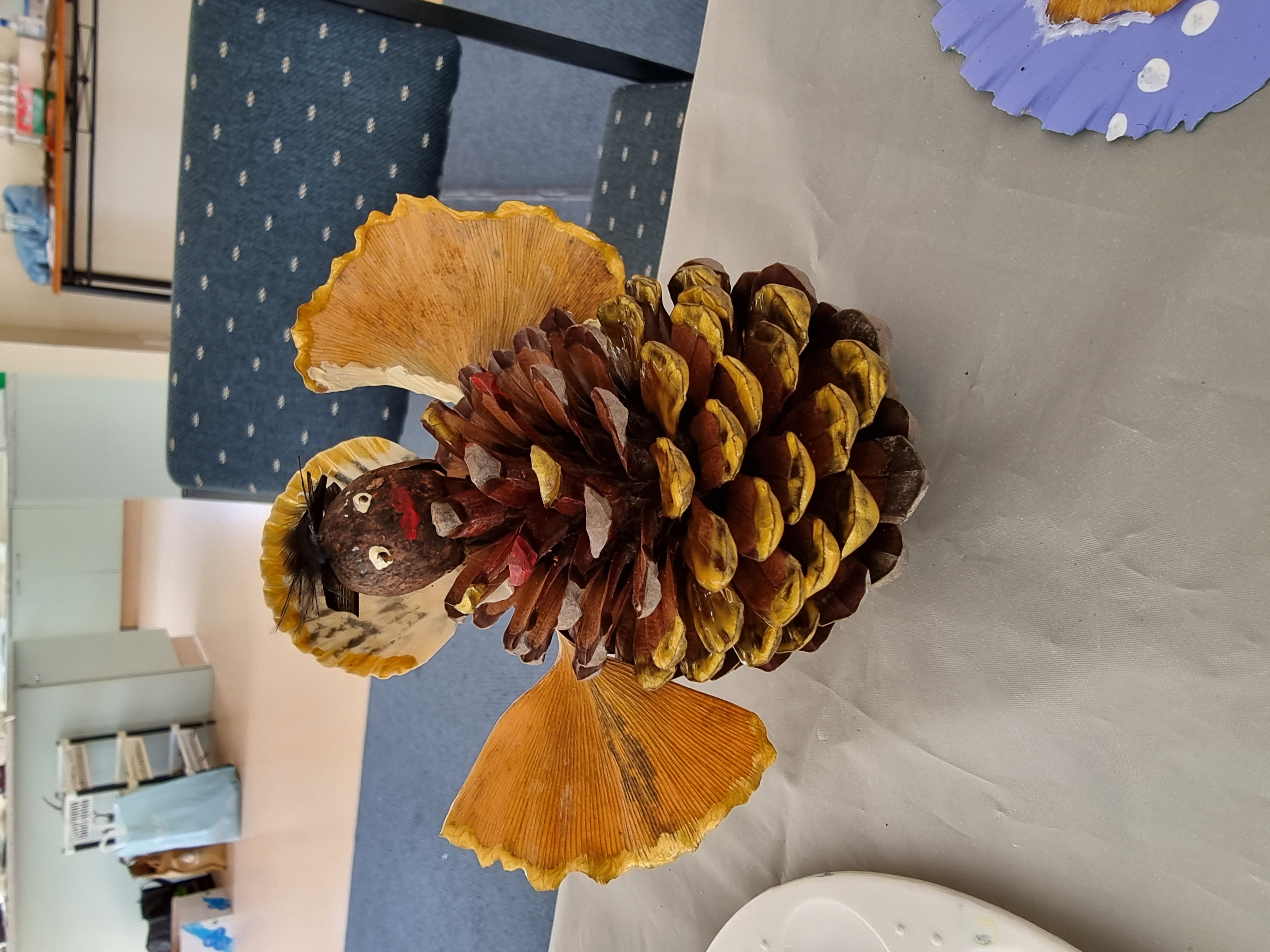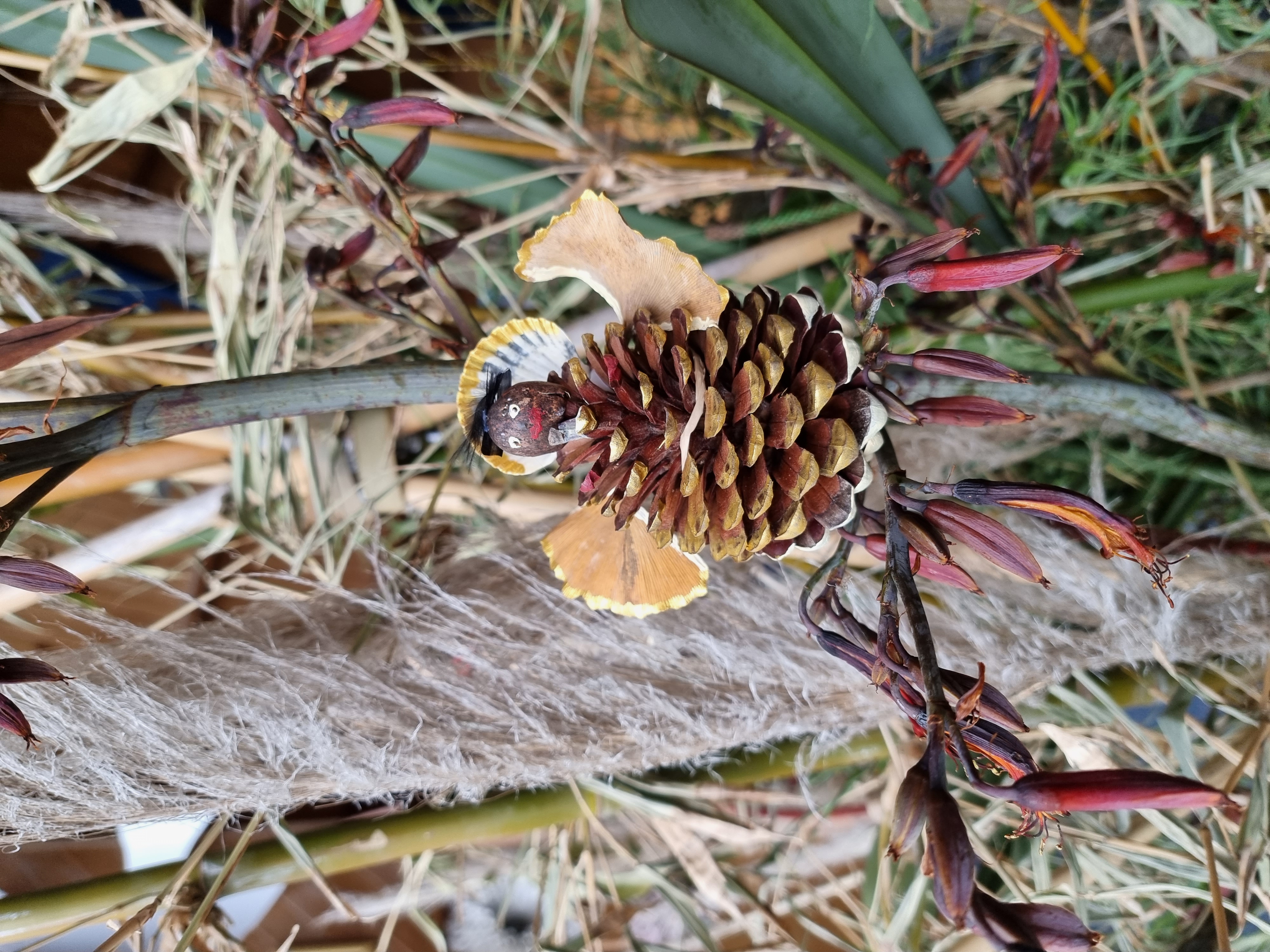 These pine cones are readily available at this time of year. These are partnered with small halo shells, pine nut smiles, feathery hair, and the ginkgo tree will happily relinquish it’s leaves to elevate our creation to greater heights, befitting of all angels!