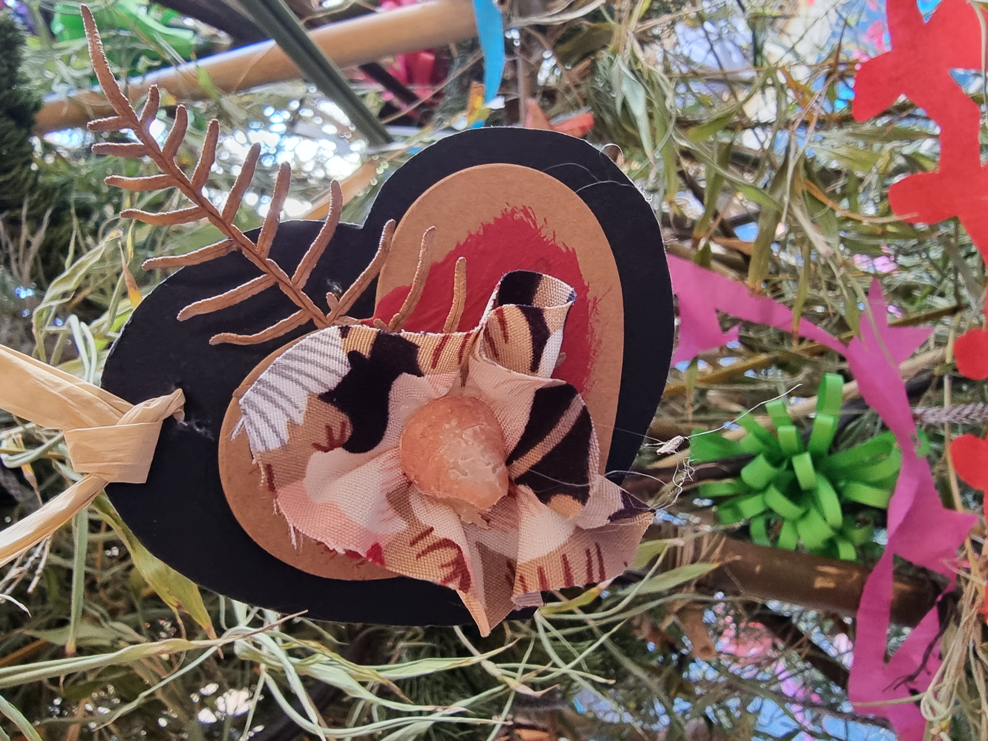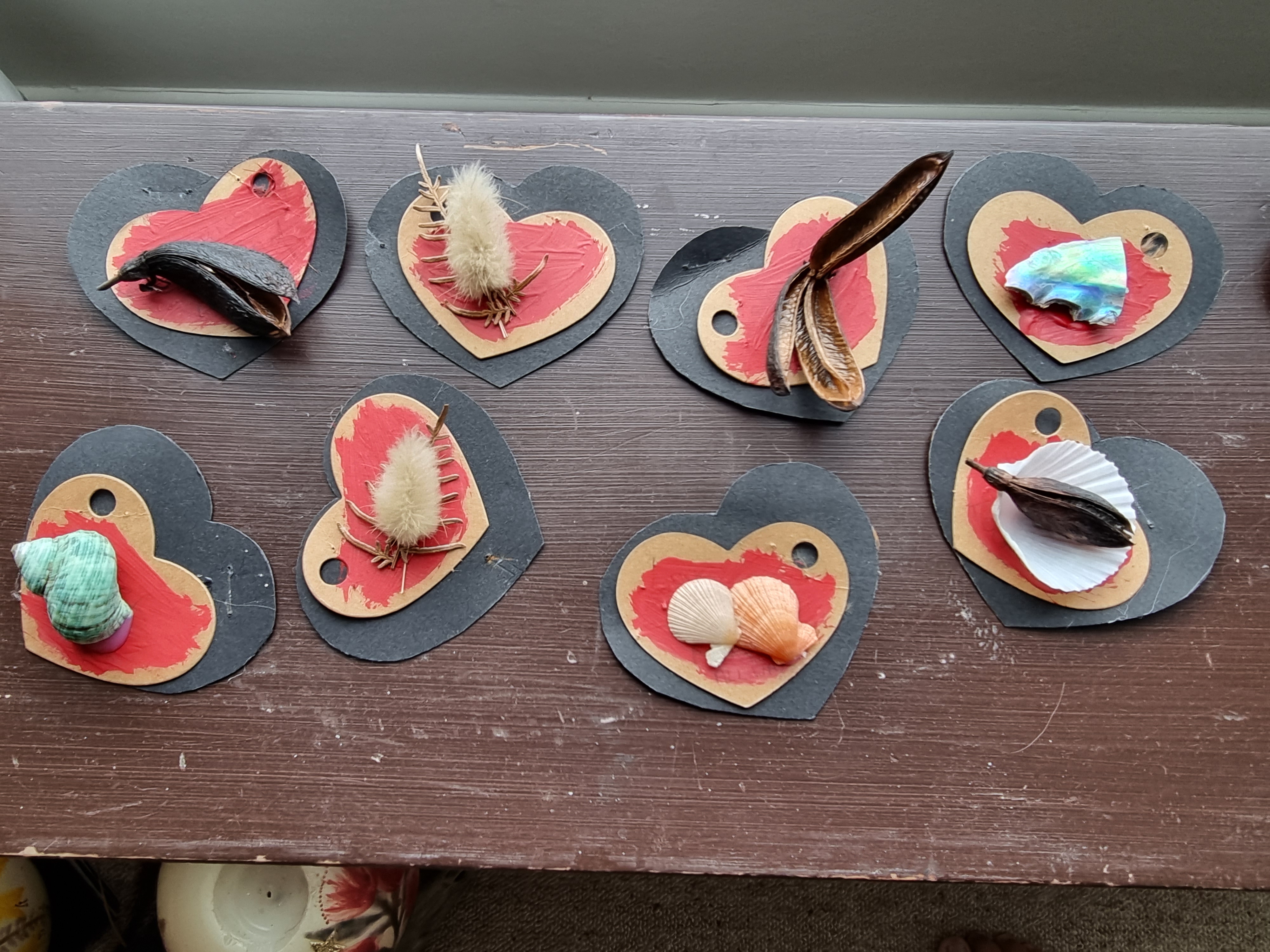 Cardboard cutouts, tapa, dash of ink, with bit & pieces from Taiao’s craft box. Voila!
