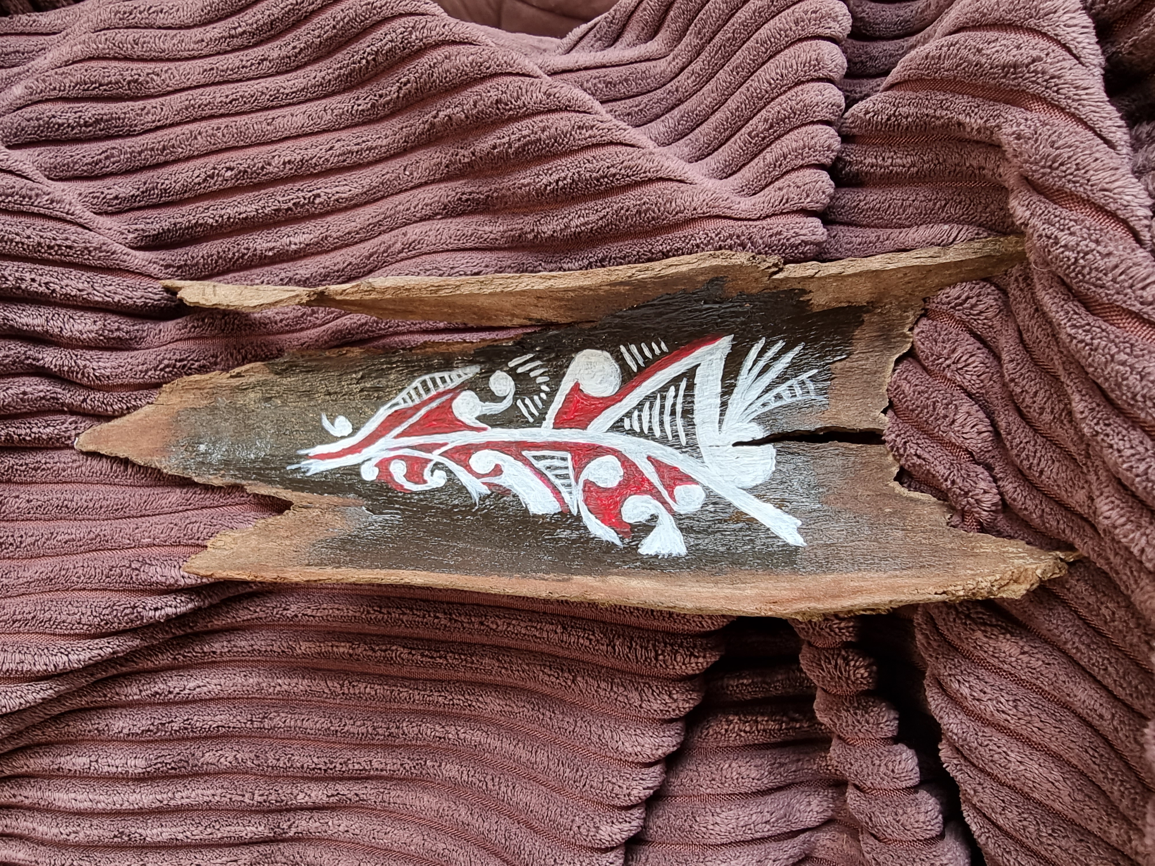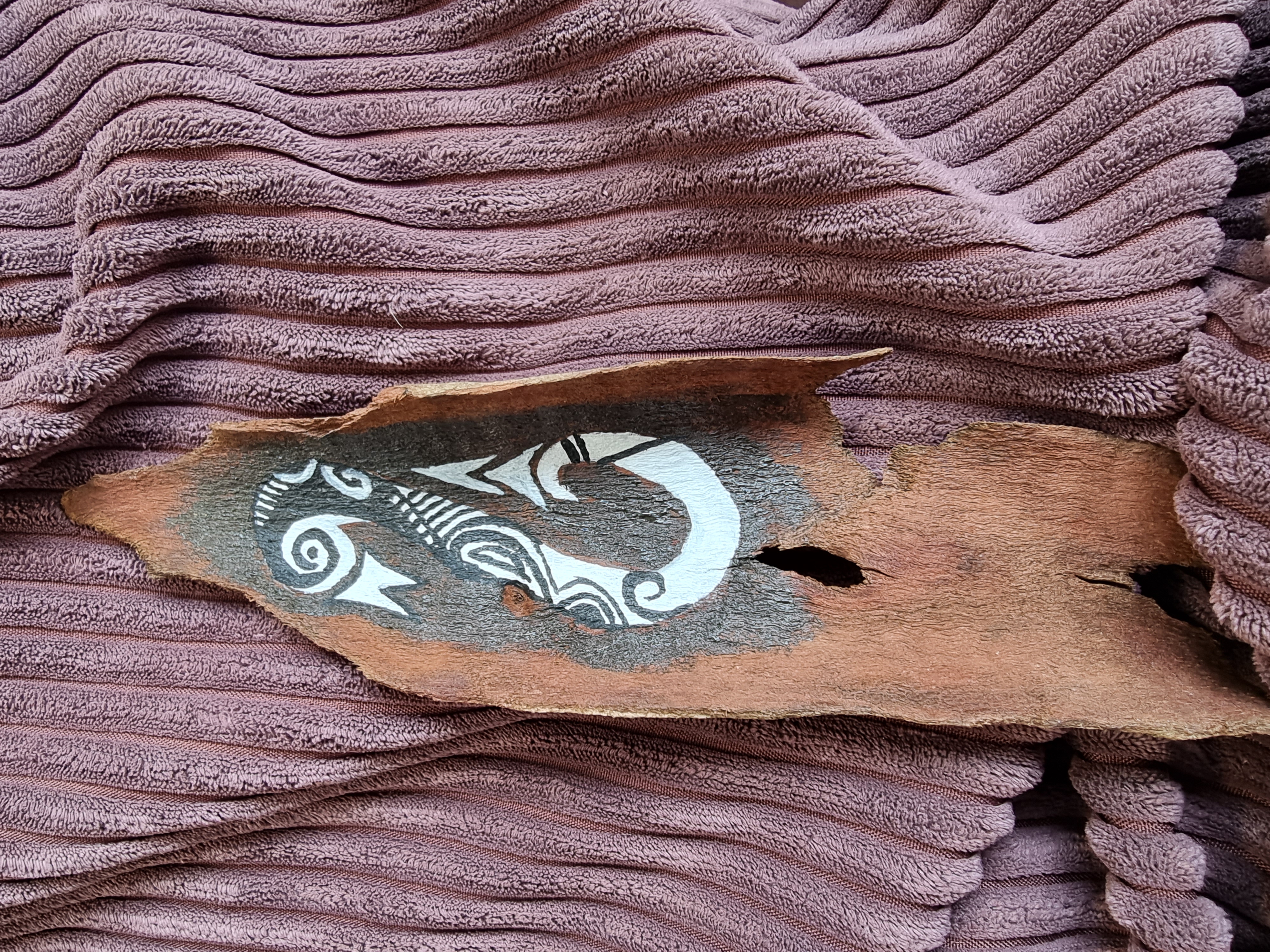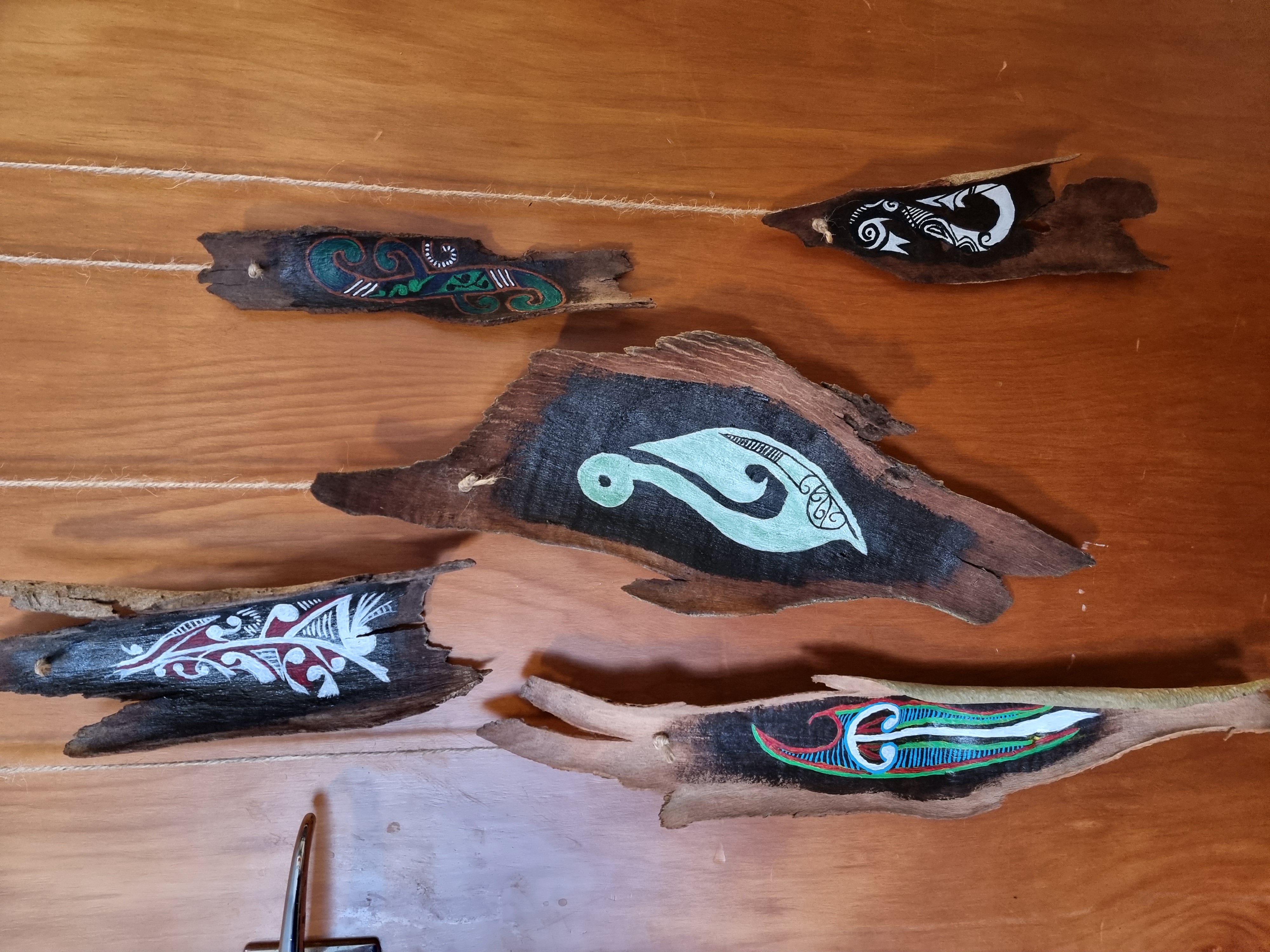Next time you’re walking on the beach or in the ngahere (forest) look around for what has been shed by the natural cycle of creation. Here we have pieces of bark fallen from the gum trees that line the Panmure basin. During lock-down we walked everywhere where the rakau (trees) continued to thrive. It is their generous gift of free canvasses that we painted then hung on Christ-mas trees. “Koia anō te aroha o te Atua ki te ao…” (for God so loved the world…).